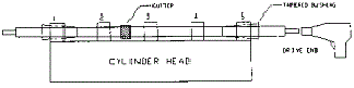 before line boring. Extra long Drive Bar allows cutting of Multi-Housings. Electric drill with 1/2 chuck is used to drive the bar (500 - 600 RPM). Tapered bushings (.005 Taper) provide self alignment and eliminate hours of set up time and expensive fixtures. Use ring bushings around drive bar bushings to mount in bored housings. Cutters are designed to cut and ream in one operation. New three angle design requires only light pressure to feed cutter- through bore and because there is no chatter, cutter- leaves a factory finish. Our system enables a complete cylinder head to be bored and five new bearings installed in under 20 minutes rather than 45 minutes or longer required by other systems.* Cutter- locks on Drive Bar with two set screws. Push cutter- through one time. DO NOT REAM TWICE. DO NOT PULL CUTTER- BACK THROUGH FINISHED BORED HOUSING. Use a constant flow of penetrating oil when cutting. This is a must to wash away cutting chips and achieve a finish necessary to install the bearing set. If cutter- binds or stops in bore loosen the cap, do not reverse cutter- rotation, this will cause breakage of carbide. Lightly work out by hand or tap straight back on bar with mallet. |