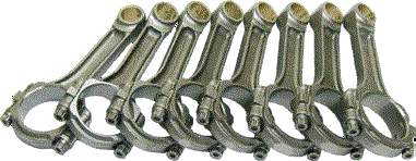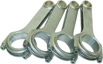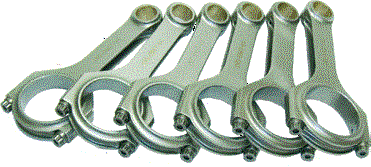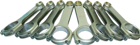 H-BEAM RODS Forged SAE 4340 steel from 2 piece forging. 3/8 ARP 2000 rod bolts. Alignment sleeves for precise cap location. Sizing performed with Sunnen Krossgrinding system. Weight-matched to +/-1g. |