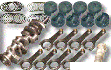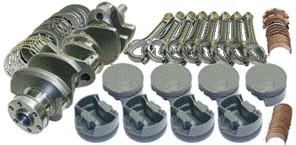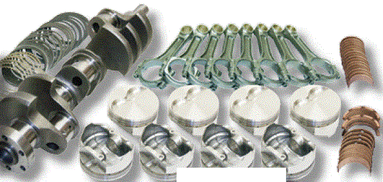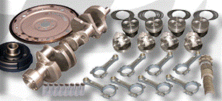 Forged 4032 Mahle pistons and plasma-moly file fit rings. Performance racing bearings. Designed for internal balance with no heavy metal needed. Recommended for competition use. Standard bore size is 4.360 |