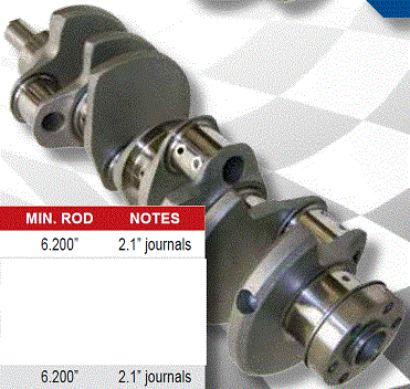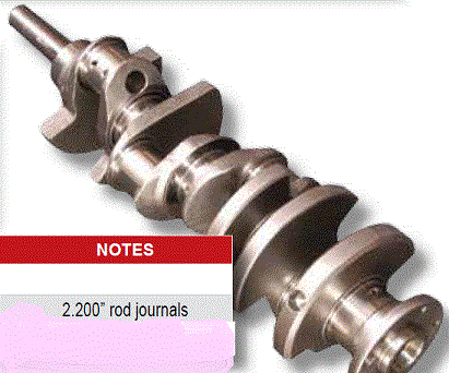 An excellent alternative to O.E. crank. .092 radiuses so standard bearings can be used. Target bobweight guaranteed +/- 2% designed for internal balance. Recommended for use in pump gas street engines, no power adders. Approximate weight is 64-68 pounds. |