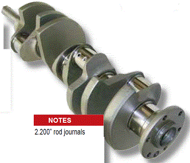 An excellent alternative to O.E. crank. .092 radiuses so standard bearings can be used. Target bobweight guaranteed +/- 2% designed for internal balance. Recommended for use in pump gas street engines, no power adders. Approximate weight is 70-76 pounds. |