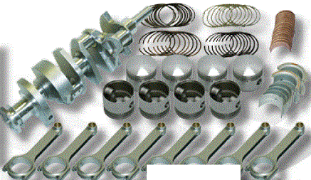 Cast steel crankshaft with performance street bearings. SIR forged 5140 steel I-Beam rods with 7/16 ARP 8740 rod bolts. Forged 4032 pistons and plasma-moly rings. All kits must be balanced by qualified machine shop before use. Standard bore size: 4.360 Recommended for use in pump-gas, street engines. No power adders. |