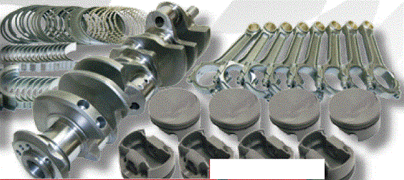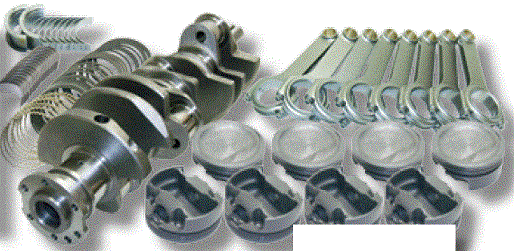 Forged 4340 steel crankshaft, forged 4340 steel H-Beam rods. 7/16 ARP 8740 capscrew rod bolts (ARP 2000 & L19 available). Forged 4032 Mahle pistons and plasma-moly file fit rings. Performance racing bearings. Designed for internal balance with no heavy metal needed. Recommended for competition use. |