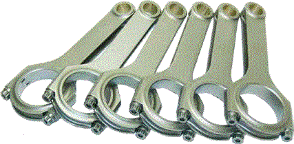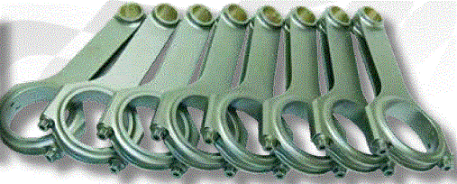 Forged SAE 4340 steel from 2 piece forging. 3/8 ARP 2000 rod bolts. Weight-matched to +/- 1g. Alignment sleeves for precise cap location. Sizing performed with Sunnen Krossgrinding system. Recommended for competition use up to 900 hp. |