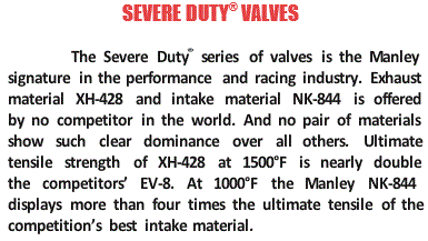 Components & Stainless Steel Valves S.I. Industries, J-Loy & E-Loy (S.B. International Inc.), Engine Pro and others. Below are the Manley valves. |