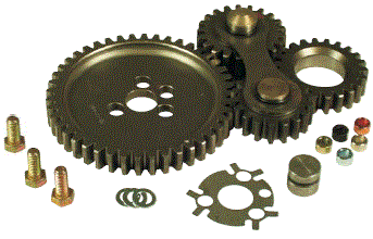 | Gear Drive Set | 48400 $243.52 | NOISY - INCLUDES 8620 CARBURIZED STEEL GEARS, ROLLER CAM BUTTON, LOCK PLATE AND BOLTS. TIMING ADJUSTED WITH 5 OPTIONAL COLOR CODED DOWEL PIN HOLE INSERTS. RECOMMENDED FOR STREET AND STRIP, CLAIMER AND RACING ENGINES UP TO 6,500 RPM. | |