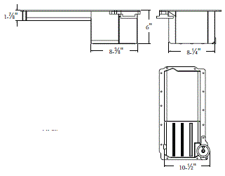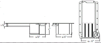 CHEVROLET SMALL BLOCK Aluminum,Wet Sump, 8 Quart Capacity, 8-1/4" Deep Engine Application: Pre-1985 Engine Blocks including Dart and Merlin Fits: Super Stock/Bracket Cars, Dragsters, Roadsters or Body Cars with wet sump oil systems Aluminum, fully fabricated oil pan accepts 4.25" strokes with steel rods Double kick-out design ensures large stroke clearance, wide main cap clearance and maximum horsepower Billet end seals ensure consistent sealing surface to billet front covers and rear main caps For use with 168-tooth flywheel combination Solid lourvered tray for maximum power and oil control Features O-ring magnetic drain plug, two 1/2" drain backs and dipstick bung |