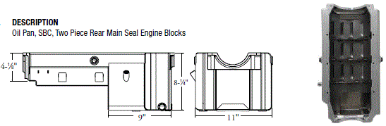 | 21234 $950.35 | Oil Pan, SBC, Two Piece Rear Main Seal Engine Blocks |