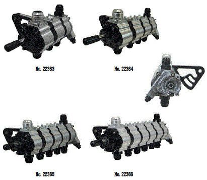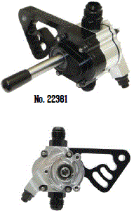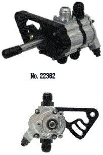 EXTERNAL OIL PUMP, TWO STAGE, FUEL PUMP DRIVE Driver's/Left Side Door Car Style Bracket An expansion to our popular line of external oil pumps. This pump gives you the option of scavenging oil from the oil pan with one stage and using the second stage to scavenge oil from turbos or superchargers and/or pull vacuum. Rear 3/8" hex fuel pump drive with 1:1 ratio that accepts the popular 1.450 ID, 3 bolt, fuel pump swivel clamps Spur gear 1.200 pressure section Light weight and efficient Includes all necessary fittings External oil pumps run cooler than internal pumps and features an xternal bypass for ease of adjustment Priming your engine's oiling systems is made simpler External pumps can help eliminate the spark scatter and camshaft loads that come with an internal pump