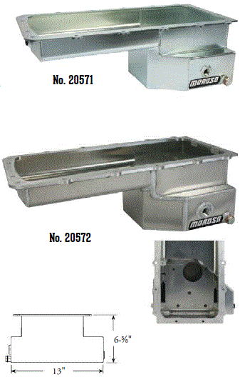 Steel,Wet Sump, 8 Quart Capacity, 10-3/4" Deep Engine Application: All 429-460 Fits: Four-wheel drive trucks and vans except Bronco . Deep sump increases capacity to 8 quarts, which reduces oil temperature and insures ample supply to pickup area . Relocated rear sump improves oil control during hard acceleration and off-road use . Trap door baffling keeps oil contained in pickup area during hard acceleration and braking . Works with most starter/flywheel combinations . Use Nos. 25970, 25971 $74.16 or 25973 $79.45 for dipstick provision - welding required |