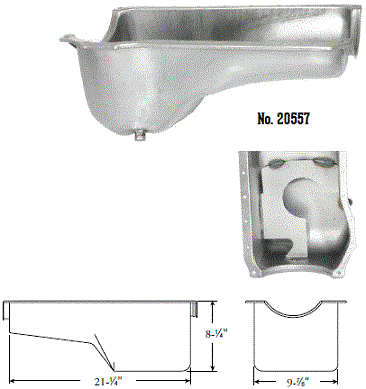 | 20558 $395.47 | Oil Pan, Steel, Clear Zinc, Kicked-out Front Sump |