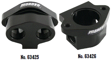 EFI FUEL RETUN LINE KIT Allows EFI conversion without welding a return line fitting to the fuel tank Simply cut a 2-3/4" section out of any 2" O.D. fuel tank filler tube and insert the 6061-T6, aluminum adapter; installs on most vehicles without removing the fuel tank Includes two Buna-N sleeves and four stainless steel hose clamps to seal theconnection on each end of the adapter 3/8" aluminum fuel fitting is factory welded to the adapter for a leak free seal Fuel fitting has a 90° smooth-contour bend inside the adapter to direct return fuel downward into the tank Use with Moroso Aluminum Fuel Line no. 65330, for a return line from the EFI regulator to the fitting located on the filler tube |