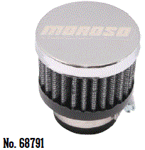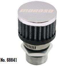 | 68817 $22.83 * | Valve Cover Filtered Breather, non-hooded style, push-in type. For Moroso Covers with 1.22" punched holes |