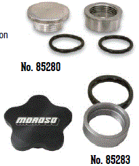 cover, tank, rear end and other locations Available in two versions, - Non-Weld, for aluminum or steel, since no welding is required then there is not the possibility of heat damage to chrome or powder coat - Weld On, for steel, Steel Bung Finger Grip cap manufactured from 6061-T6 billet aluminum with a black anodized finish, Moroso logo, includes O-Ring for leak free sealing |