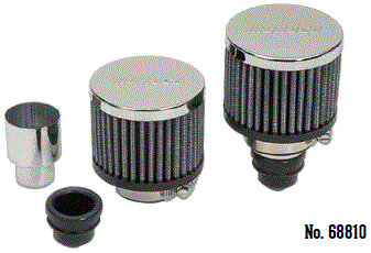 1.22" holes) without welding Consists of two filtered breathers with clamps, two chrome plated adapter tubes and two valve cover grommets Filters must be oiled before use |