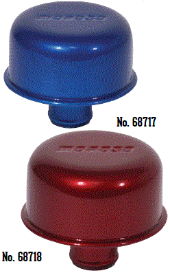 | 68717 $56.61 * | One Piece Push-In Valve Cover Breathers, Aluminum, Powder Coated-Blue, |