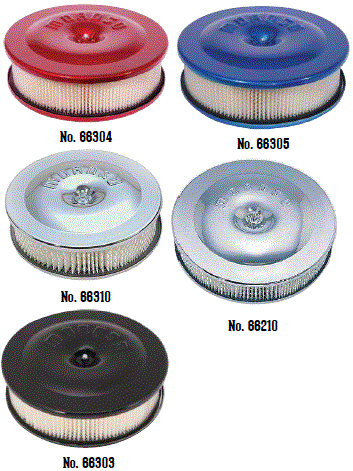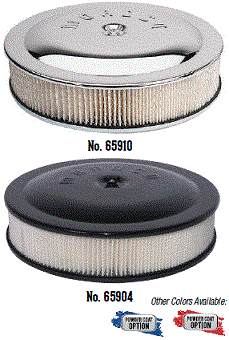 | 65910 $82.16 * | Racing Air Cleaner, 14" dia. with 3" filter, Chrome plated steel, hand polished, PCV adapter included |