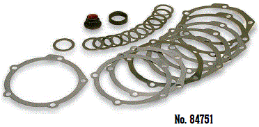 | 84750 $68.66 | Drag Race Kit Contains: housing gasket; pinion shaft seal; nine pinion support shims consisting of one each .005", .006", .0075", .0082", two .004", and three .0105"; eight pinion pre-load shims for use with aftermarket aluminum pinion supports consisting of one each .005", .006", .0075", .0082", .009" and three .0105"; one pinion housing O-ring; and one 3/4" -20 Ford pinion nut |