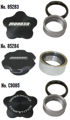 | 85284 $44.42 | Fill Cap Kit, Universal, Steel Bung ,Black Anodized with Moroso logo, 1-1/4"-12UNF Threads, 1.5" O.D. |