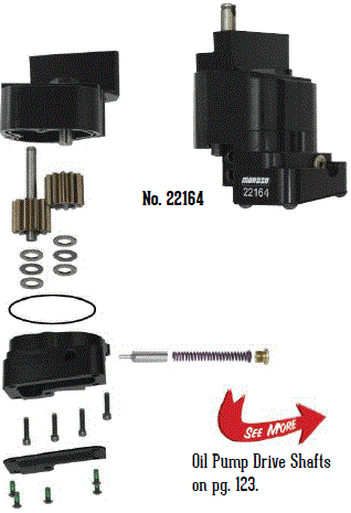 | 22124 $164.52 | Oil Pump and Pickup Package, Small Block Chevy, Moroso Part no. 22099 $128.13 Std. Volume Pump, Fits: 8-1/4 Deep Oil Pan |
