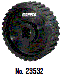 | Available in sizes that will not only give you the ratio you want, but will adjust the centerline measurement between your pump and crankshaft center. This will help in tight fitting conditions while allowing you to have the correct drive ratio. Moroso drive pulleys fit any 1.00" mandrel with a 1/8" keyway slot. |