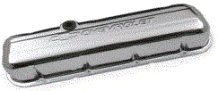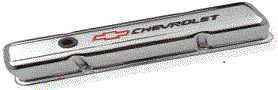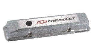 Block Gen I Engines Chevy Small Block 262 to 400 Engines (1959-1986) These premium valve covers are die-cast aluminum, manufactured to GM specifications, equipped with internal oil drippers and GMdesigned baffles. Available with raised/milled Bowtie and CHEVERLOT Emblem in addition to the traditional recessed emblems with red and/or black inlaid paint. Tall Style, equipped with removable baffles and grommets. Sold in pairs. |