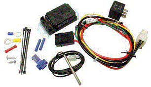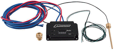 FAN CONTROLLERS NEW! Variable Speed Fan Controller with Digital Display Maintaining a consistent engine temperature is a more efficient way to keep your engine cool. Many other fan controllers turn the fan on when the engine is getting too hot, and turn off after expending a lot of energy cooling it. This can lead to amperage spikes, excessive fan wear, and plenty of undesired fan noise. These problems can all be reduced substantially with PROFORM's new variable speed controller. This variable speed fan controller makes the fan or fans run at whatever speed is needed to maintain a consistent temperature. The controller receives a temperature signal from the radiator with either a push-in, or thread-in brass probe. The fan controller processes this signal and runs the fan(s) at the correct speed needed to maintain the desired temperature. The weather resistant billet aluminum housing with bright digital display ensures easy setting by simply pushing + or - to set the temperature. By simply pressing the Mode button, the digital display will show temperature in F° & C°,as well as the amperage being used by the fan(s). The controller can accommodate one or two 12v volt brushed motor fans. To substantially reduce amperage spikes, the controller soft starts the fan(s) by slowly ramping up to the required speed. Mounting hardware, and necessary electrical connections included. Adjustable Electric Fan Controllers PROFORMs premium adjustable fan controllers make adding a thermostat to your cooling system easy. Fan activation is adjustable between 150 and 240 degrees F. These fan controllers are recommended for race and street applications. |