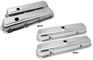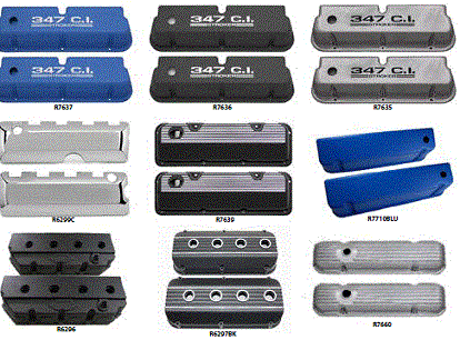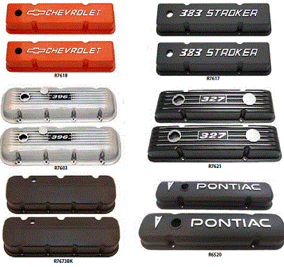 | Small Block Chevrolet 283-400 V8, Big Block Chevrolet 396-454-502 V8, LS1 V8, Ford 260-351W, Chrysler, Pontiac 326-455, AMC/Jeep 199-232-258 inline 6, AMC 304-401 V8. Ford FE, Ford 429-460, Ford 351C, Chrysler Hemi, Chevy 6 Cylinder 2.8L 4.3L 216 cu. in. 194 230 260 292, 235 inline 6, Buick, Cadillac 365-500 V8, Holden inline 6 & V8, Oldsmobile 260-455, Chrysler 198-225 slant 6, Chrysler 319-360 V8, Chrysler 318-360 V8, Chrysler 383-440 V8, Valve Cover Gaskets, Valve cover Baffles, Valve Cover Grommets, Evacuation System, Breather Kits, Open Filter Breathers, Various Breathers, T-bar Wing Nuts, Wing Nuts, Valve Cover bolts & studs, Spreader Bars, Wire Separators, Wire Dividers and other parts |