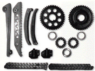 Designed to work with OEM chains, tensioners and guides Contains all OEM replacement chains, tensioners and guides 2 cast iron cam sprockets with black oxide coating 2 cam spacers 2 billet steel heat treated, 9 keyway crank sprockets 1 crank sprocket spacer |