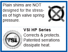 | For decades, engine builders have been installing VSI inserts/adjusters on all valve jobs. Why? Because they are superior to plain shims. Only VSI has patented heat-retarding serrations. Whether you're a PER or CER (Custom Engine Rebuilder), VSI completes the valve job, building your repu- tation while doing a complete job for your customer. |
