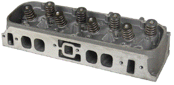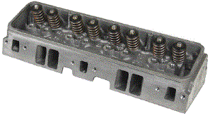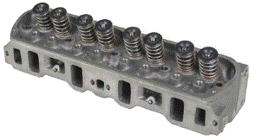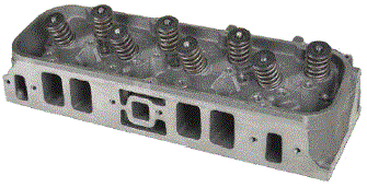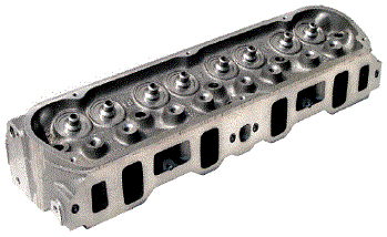 = Material: High density cast iron = Valve Seats: Intake (integral), exhaust (hardened) = Valve Guides: Integral cast iron = Spring Seats: Machined for 1.550 (1.625 max.) = Valves: Erson stainless steel valves in assemblies (inconel exhaust valves on marine applications) = Valve Diameter: 2.300 intake, 1.880 exhaust (11/32 stem) = Guide Plates: Stock = Rocker Arm Studs: Screw-in style = Rocker Arms: Standard = Intake Runner: 320 or 345cc, standard port location = Exhaust Ports: 137cc, Raised .600 = Combustion Chamber: 119cc = Spark Plug: 14mm 5/8 .460 reach tapered style, Accel 276 or 276S or equivalent = Valve Job: Multi-angle intake and radiused exhaust = Valve Cover Rail: Raised = Valve Angle: Stock 24° = Accessory Bolt Holes: Stock = Chamber Design: Open |