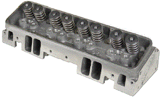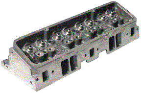 = Material: High density cast iron = Valve Seats: Intake (integral), exhaust (hardened) = Valve Guides: Integral cast iron = Spring Seats: Machined for 1.550 (can machine to 1.625) = Valves: Erson stainless steel valves in assemblies (inconel exhaust valves on marine applications) = Valve Diameter: 2.020 intake, 1.600 exhaust (11/32 stem) = Rocker Arm Studs: Screw-in style = Rocker Arms: Adjustable rockers recommended. 1.6 ratio (use of 1.73 ratio will require elongation of pushrod holes) = Intake Runner: 200cc, standard port location = Exhaust Ports: 64cc, standard location (dual exhaust bolt pattern to accommodate large custom headers) = Combustion Chamber: 64cc = Spark Plug: 14mm 5/8 .460 reach tapered style, Accel 276 or 276S or equivalent = Valve Job: Multi-angle intake and radiused exhaust = Valve Cover Rail: Raised = Valve Angle: Stock 20° = Accessory Bolt Holes: Stock |