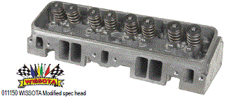 = Material: High density cast iron = Valve Seats: Intake (integral), exhaust (hardened) = Valve Guides: Integral cast iron, machined for .530 seals = Spring Seats: Machined for 1.550 = Valves: Erson stainless steel valves in assemblies = Valve Diameter: 2.080 intake, 1.600 exhaust (11/32 stem) = Rocker Arm Studs: Screw-in style = Rocker Arms: 1.5 ratio (use of 1.6 ratio will require elongation of pushrod holes) = Intake Runner: 220cc, standard port location = Exhaust Ports: 70cc, standard location = Combustion Chamber: 50cc or 64cc = Straight or Angle plugs (Angle only on 50cc heads) = Spark Plug: 14mm 5/8 .460 reach tapered style. Accel 276 or 276S or equivalent = Valve Job: Multi-angle intake and radiused exhaust = Valve Cover Rail raised w/perimeter and center bolt = Valve Angle: Stock 23° = Accessory Bolt Holes: Stock = Accepted by most oval tracks and sanctions as stock replacements. Check with rule book. |