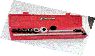 Universal Cam Bearing Driver Kit Drive camshaft bearings easily with one complete, universal kit. Now you can remove or insert camshaft bearings in nearly all engines from sport compacts and muscle cars to heavy-duty trucks. The expander arm has a neoprene sleeve with the split driving plugs mounted and expanded to size. Kit comes with two sets of rubber sleeves for each expanding driver. Use the brown sleeves for thin wall bearings and the black sleeves for thick wall bearings. Range 1.25" to 2.69" (28.58 - 68.3mm). Includes: Driving shaft, driving shaft extension, expander unit, five (5) split driving plugs, two driving collars, centering cone and handy carrying case. 66820 $285.30 Universal Cam Bearing Driver Kit |