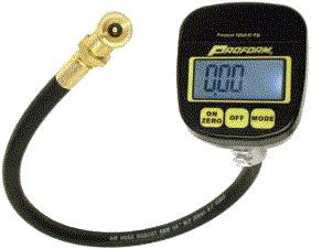 Digital Tire Pressure Gauge Take the guesswork out of tire pressure measurement! Digital display includes a PEAK hold function, and backlighting. Also includes bleed buttons for tire bleeding, and a peak hold hose pressure bleed. 0-100 psi in 0.01 psi increments. 67399 $211.53 Digital Tire Pressure Gauge 0-100 psi. |